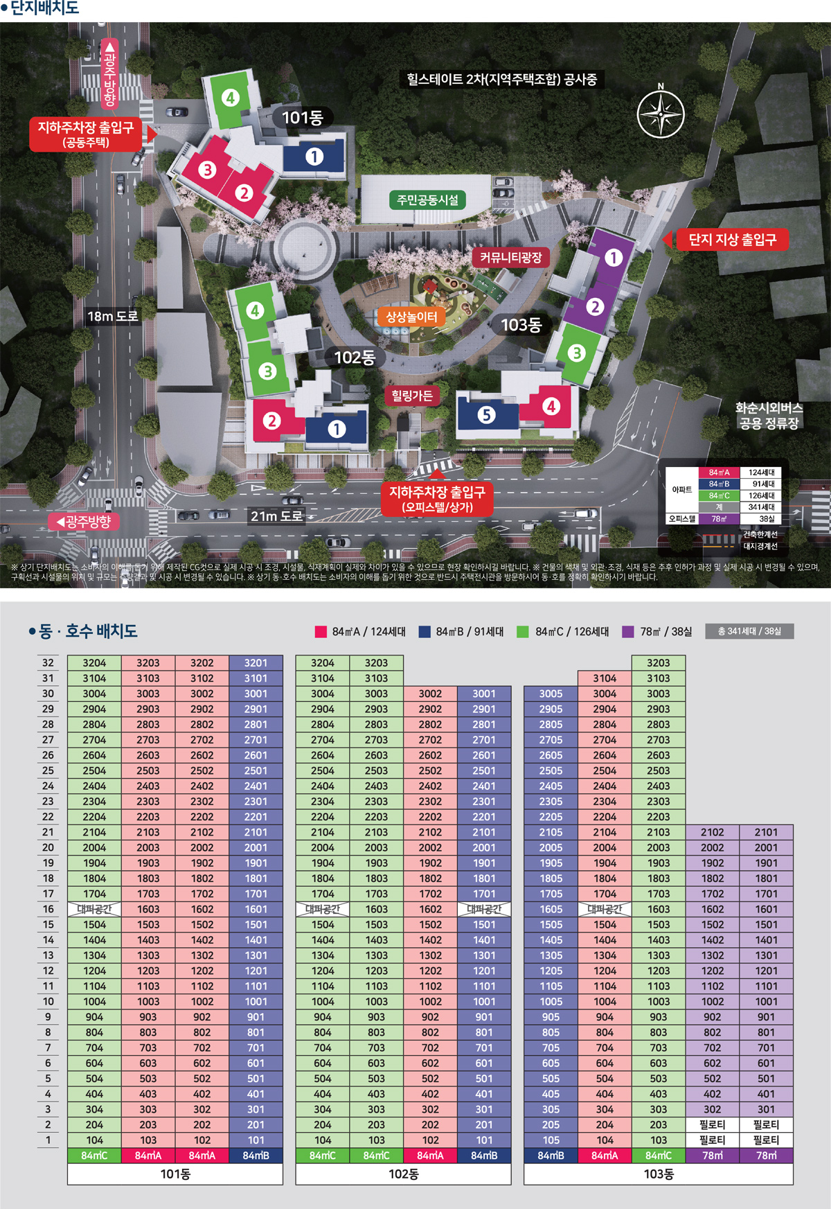 - ※ 상기 동·호수 배치도는 소비자의 이해를 돕기 위한 것으로 반드시 주택전시관을 방문하시어 동·호를 정확히 확인하시기 바랍니다.